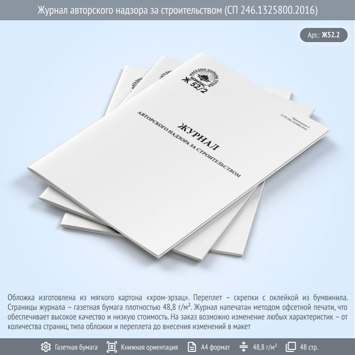 Журнал авторского надзора за строительством (СП 246.1325800.2016) (48 стр., Ж52.2) в Кызыле купить