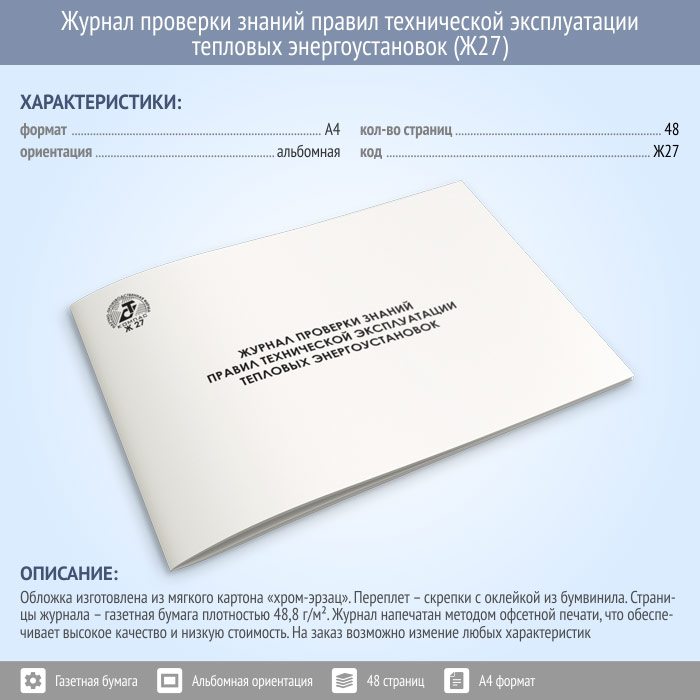 Журнал проверки знаний правил технической эксплуатации тепловых энергоустановок (48 стр., Ж27) в Кызыле купить