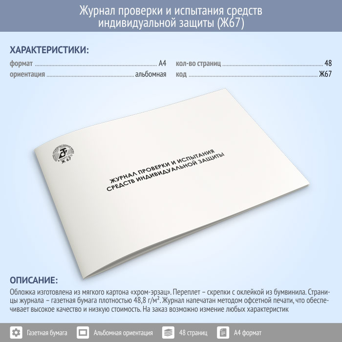 Журнал проверки и испытания средств индивидуальной защиты (48 стр., Ж67) в Кызыле купить