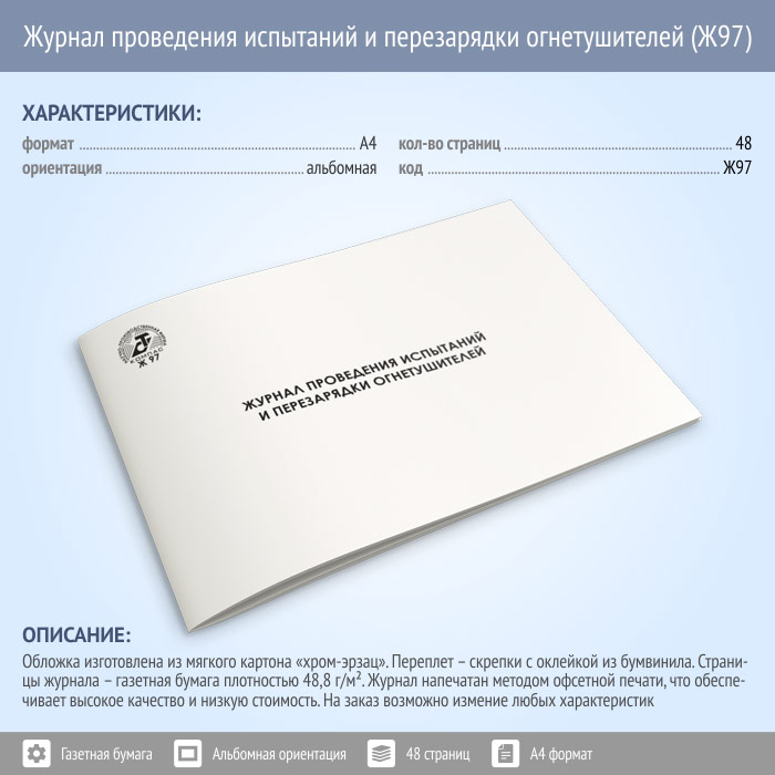 Журнал проведения испытаний и перезарядки огнетушителей (48 стр., Ж97) в Кызыле купить