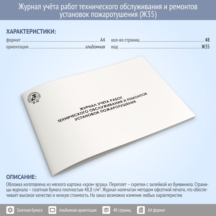 Журнал учета работ технического обслуживания и ремонтов установок пожаротушения (48 стр., Ж35) в Кызыле купить