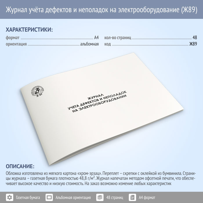 Журнал учета дефектов и неполадок электрооборудования (48 стр., Ж89) в Кызыле купить