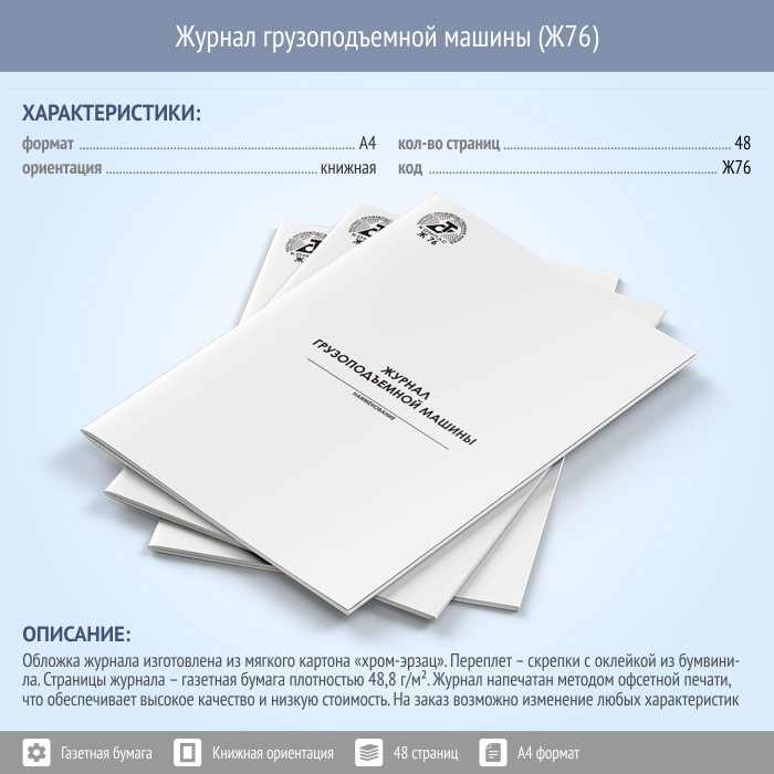 Журнал грузоподъемной машины (48 стр., Ж76) в Кызыле купить