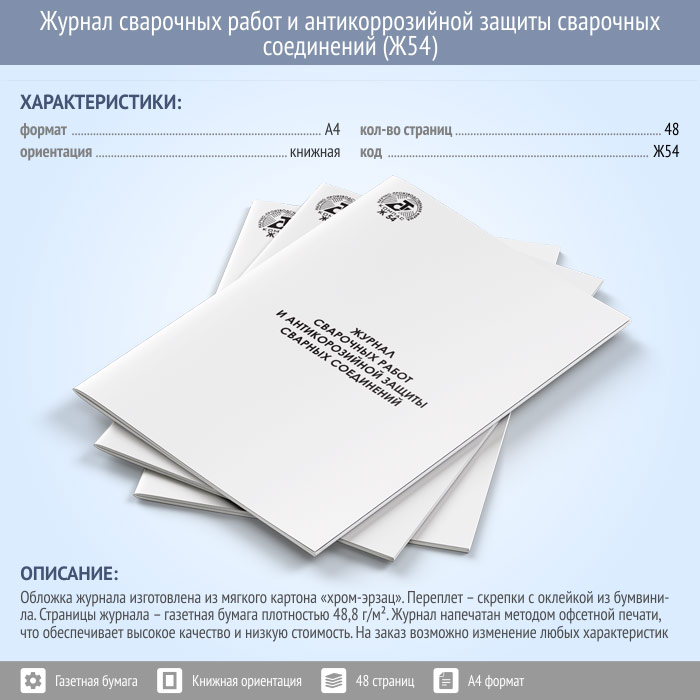 Журнал сварочных работ и антикоррозийной защиты сварочных соединений (48 стр., Ж54) в Кызыле купить