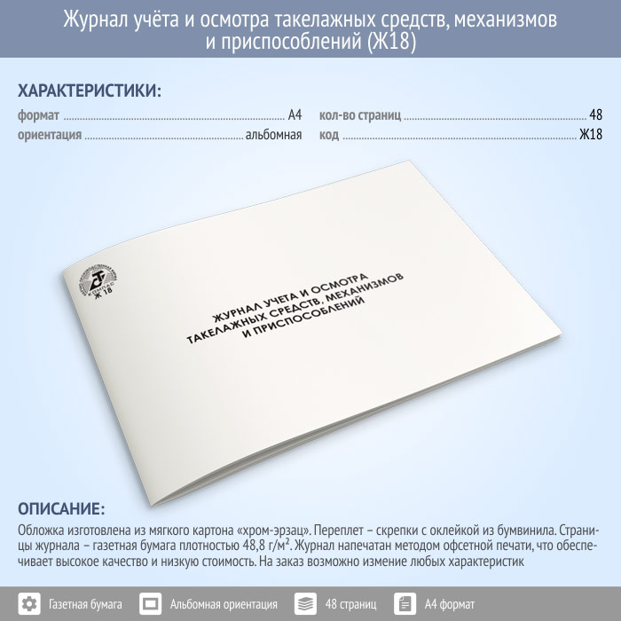Журнал учета и осмотра такелажных средств, механизмов и приспособлений (48 стр., Ж18) в Кызыле купить