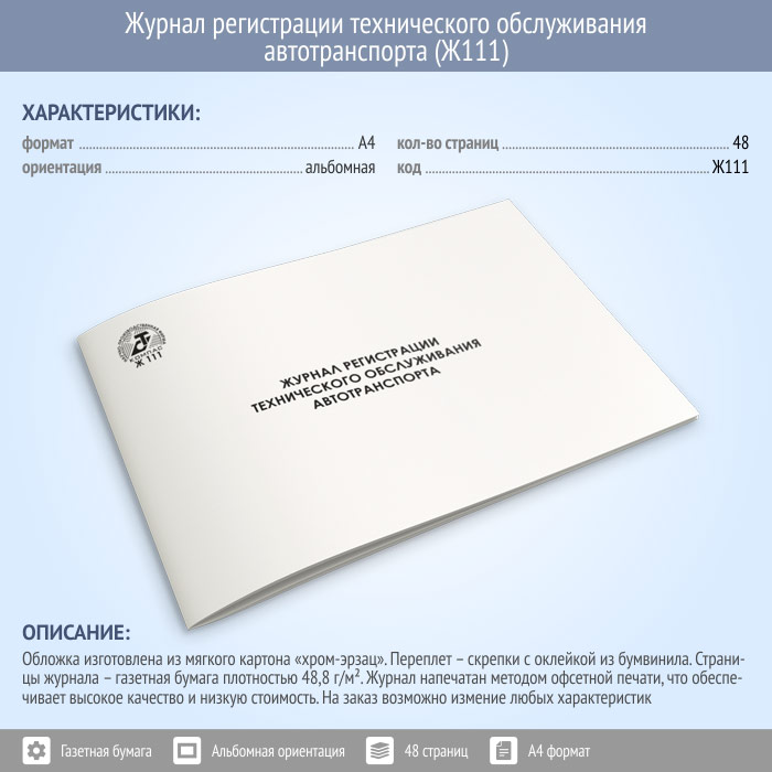 Журнал регистрации технического обслуживания автотранспорта (48 стр., Ж111) в Кызыле купить