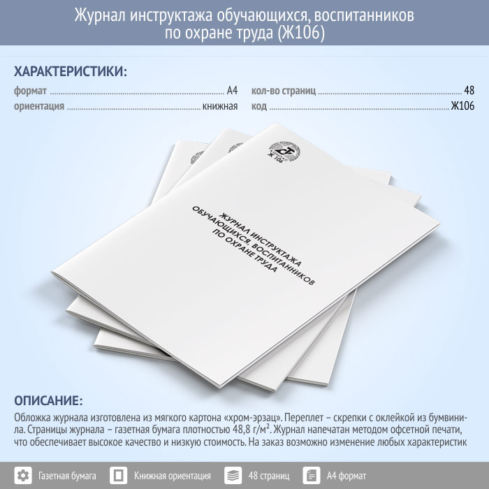 Журнал инструктажа обучающихся, воспитанников по охране труда (48 стр., Ж106) в Кызыле купить