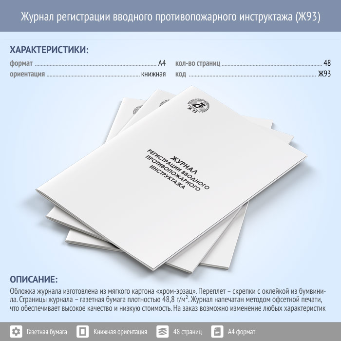 Журнал регистрации вводного противопожарного инструктажа (48 стр., Ж93) в Кызыле купить