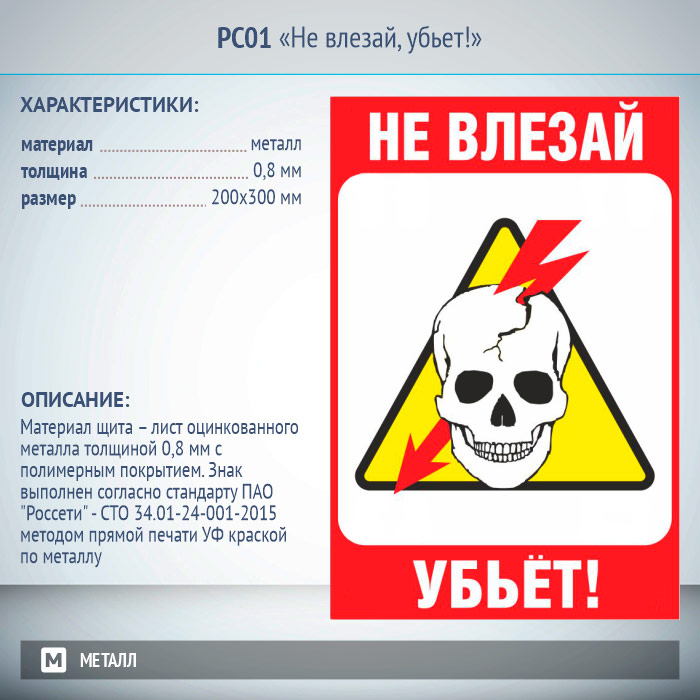 Знак «Не влезай, убьет!», РС01 (металл, 200х300 мм) в Кызыле купить