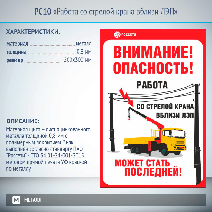 Знак «Работа со стрелой крана вблизи ЛЭП», РС10 (металл, 200х300 мм) в Кызыле купить