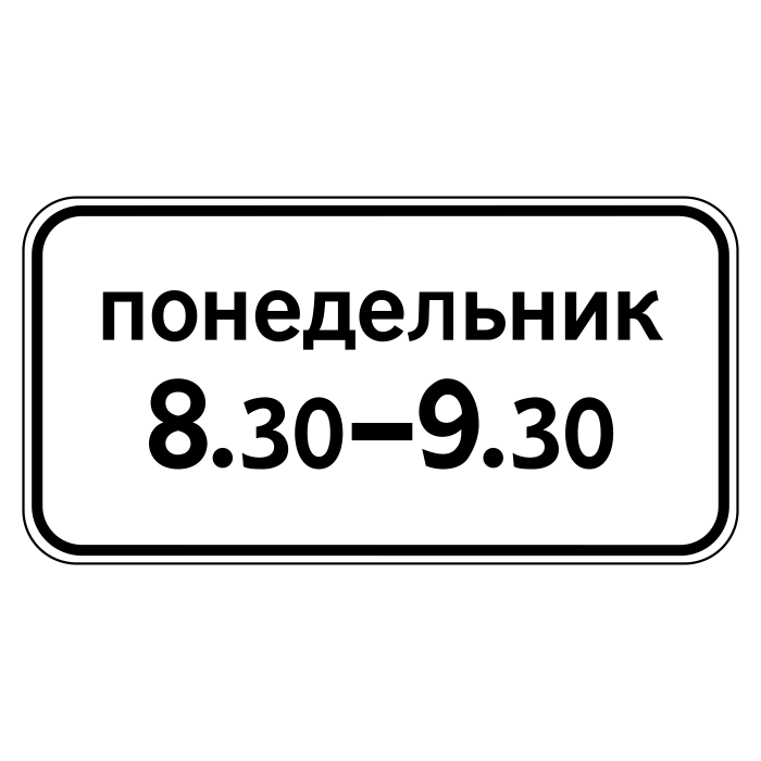 Дорожный знак 8.5.7 «Время действия» (металл 0,8 мм, II типоразмер: 350х700 мм, С/О пленка: тип В алмазная) в Кызыле купить