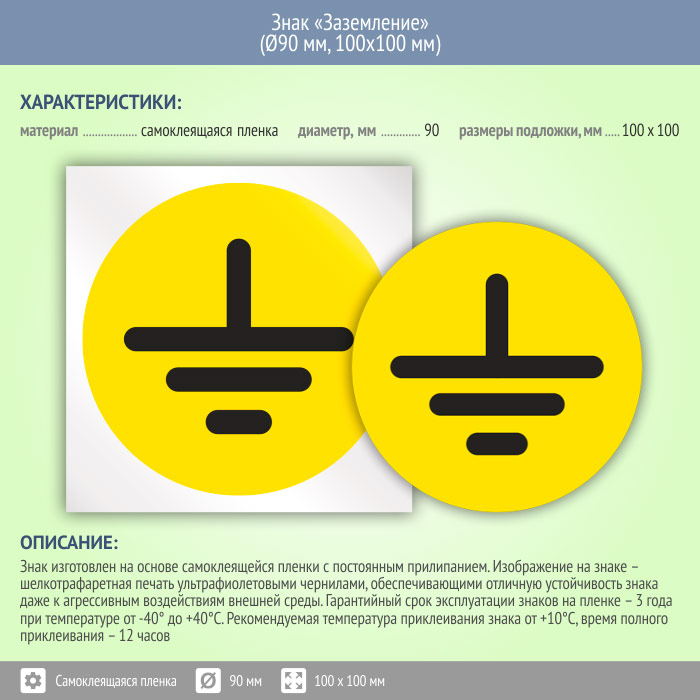 Знак (плакат) «Заземление», S46 (пленка, диаметр 90 мм, 100х100 мм) в Кызыле купить