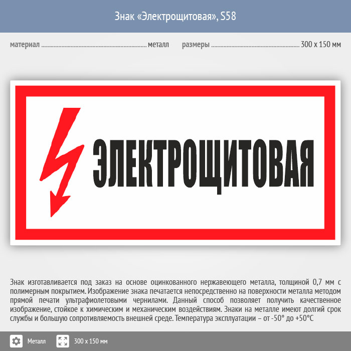 Знак (плакат) «Электрощитовая», S58 (металл, 300х150 мм) в Кызыле купить