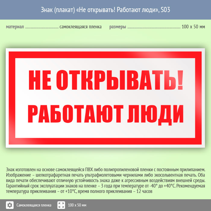 Знак (плакат) «Не открывать! Работают люди», S03 (пленка, 100х50 мм) в Кызыле купить