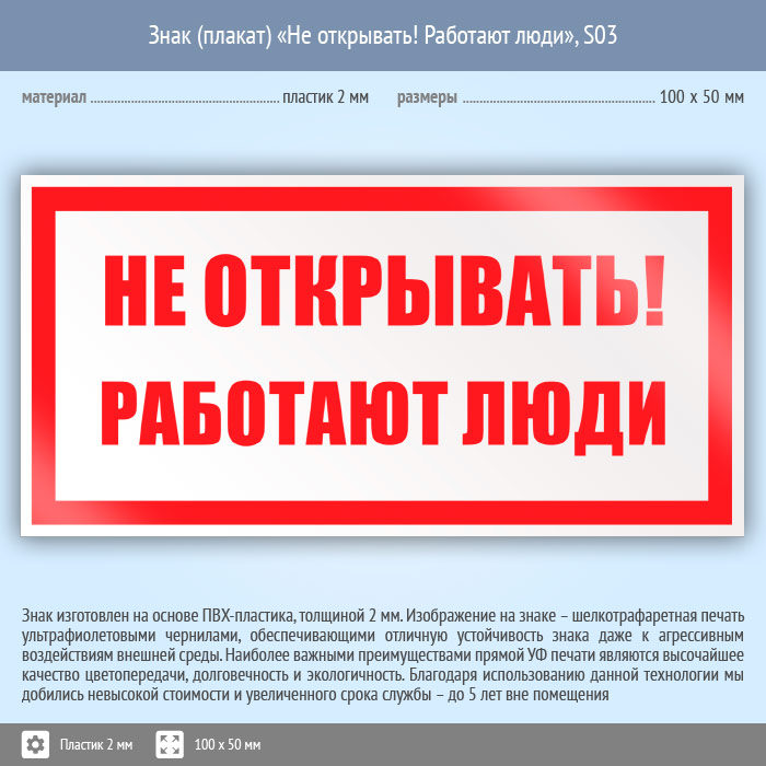Знак (плакат) «Не открывать! Работают люди», S03 (пластик, 100х50 мм) в Кызыле купить