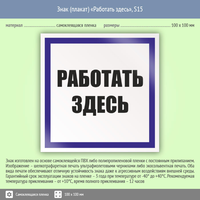 Знак (плакат) «Работать здесь», S15 (пленка, 100х100 мм) в Кызыле купить