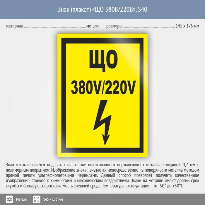 Знак (плакат) «ЩО 380В/220В», S40 (металл, 145х175 мм) в Кызыле купить