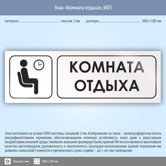 Знак «Комната отдыха», И03 (пластик, 300х100 мм) в Кызыле купить