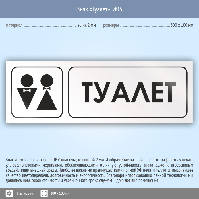 Знак «Туалет», И05 (пластик, 300х100 мм) в Кызыле купить