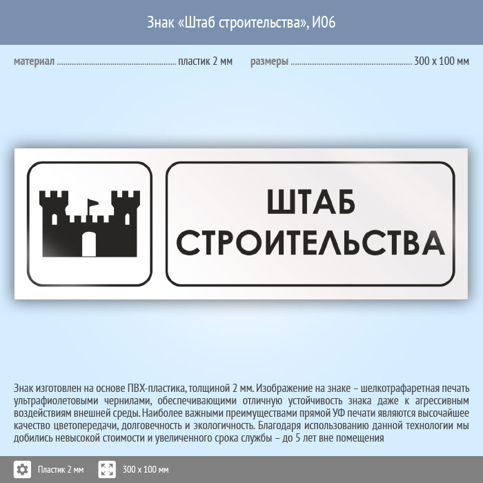 Знак «Штаб строительства», И06 (пластик, 300х100 мм) в Кызыле купить