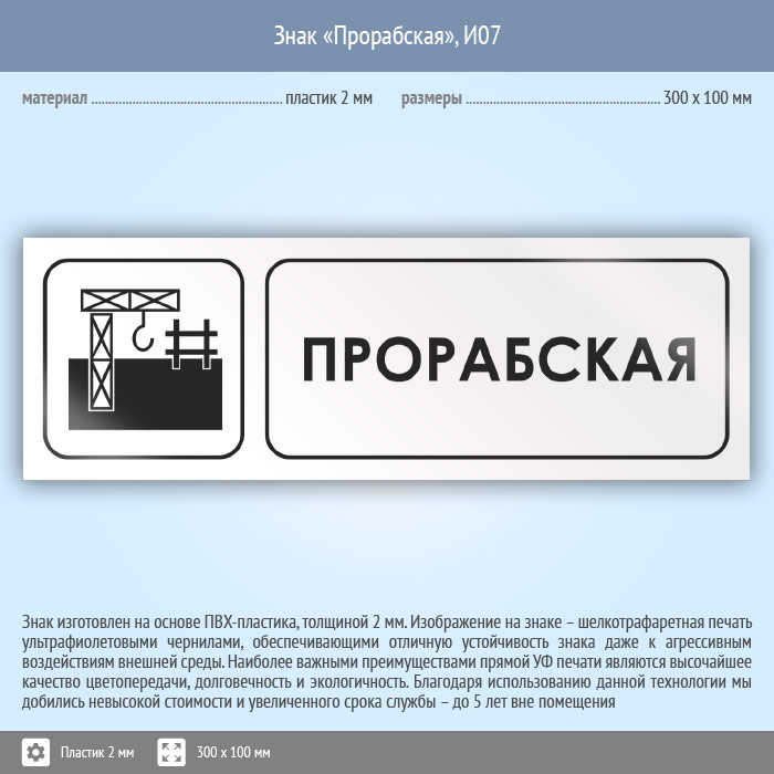 Знак «Прорабская», И07 (пластик, 300х100 мм) в Кызыле купить