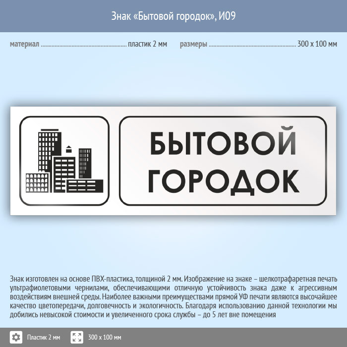Знак «Бытовой городок», И09 (пластик, 300х100 мм) в Кызыле купить
