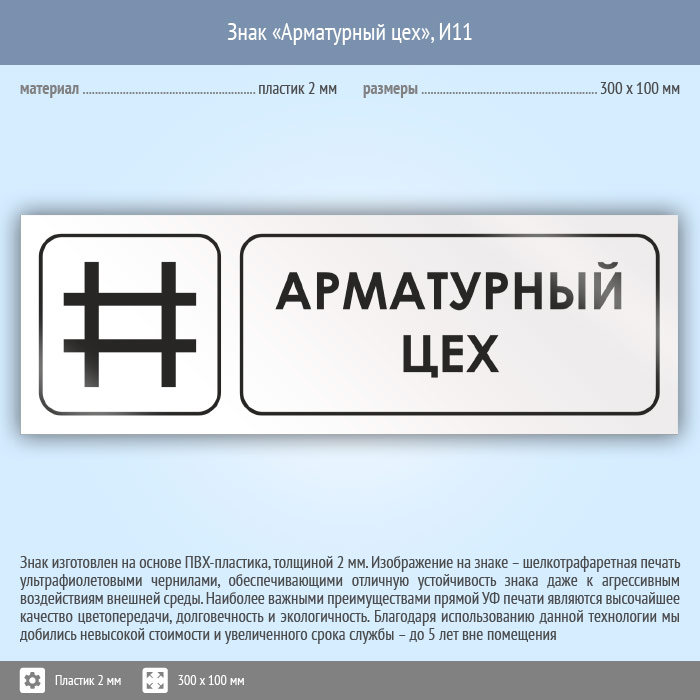 Знак «Арматурный цех», И11 (пластик, 300х100 мм) в Кызыле купить