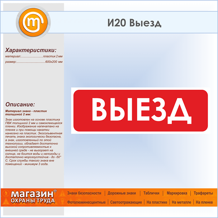 Знак «Выезд», И20 (пластик, 600х200 мм) в Кызыле купить