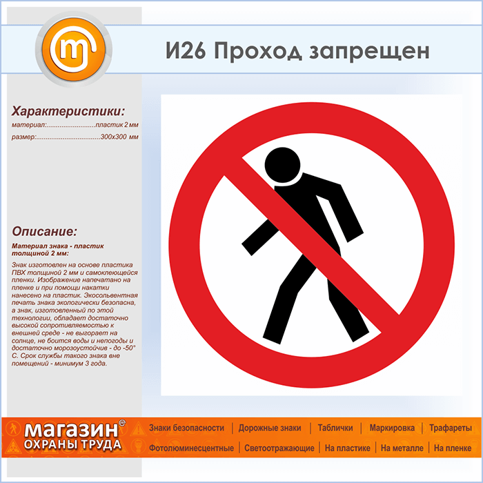 Знак «Проход запрещен», И26 (пластик, 300х300 мм) в Кызыле купить