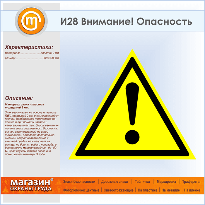 Знак «Внимание! Опасность», И28 (пластик, сторона 300 мм) в Кызыле купить
