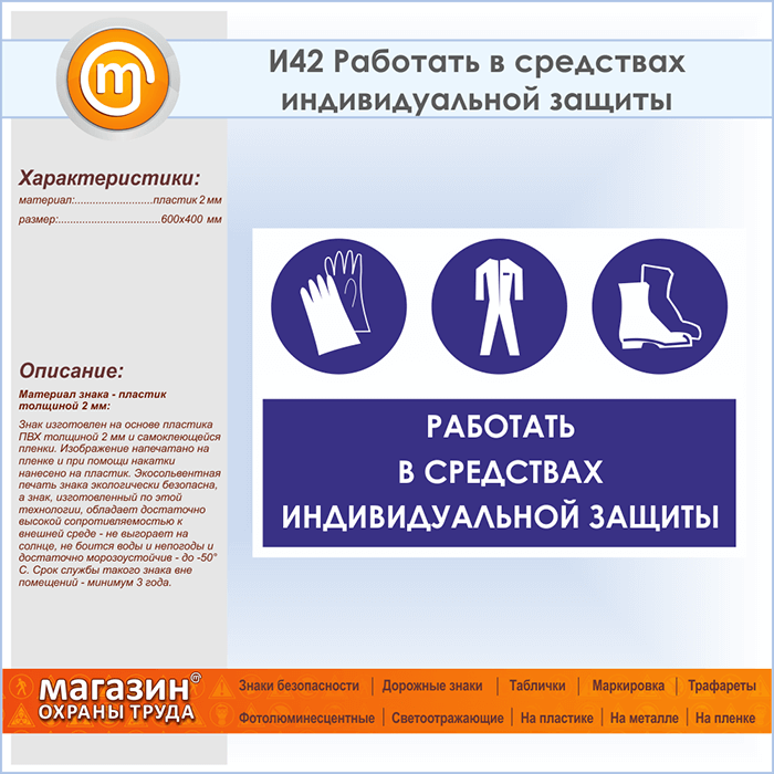 Знак «Работать в средствах индивидуальной защиты», И42 (пластик, 600х400 мм) в Кызыле купить