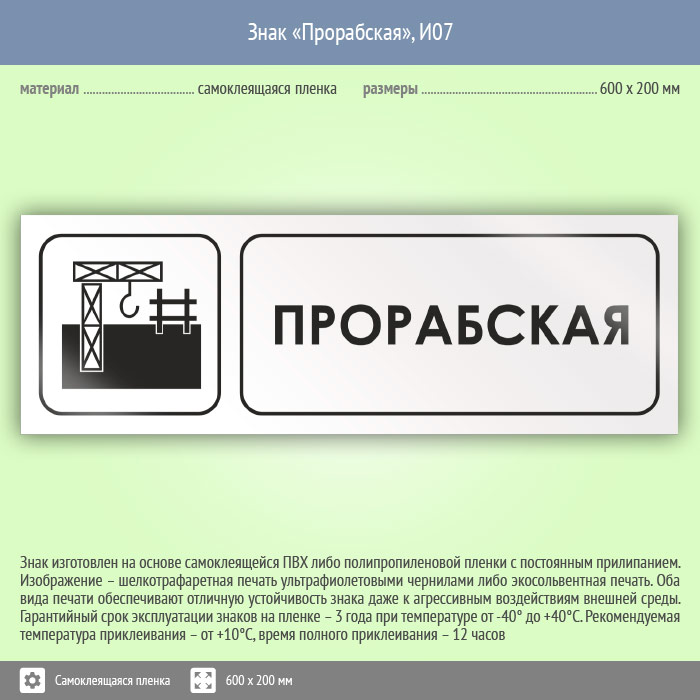 Знак «Прорабская», И07 (пленка, 600х200 мм) в Кызыле купить