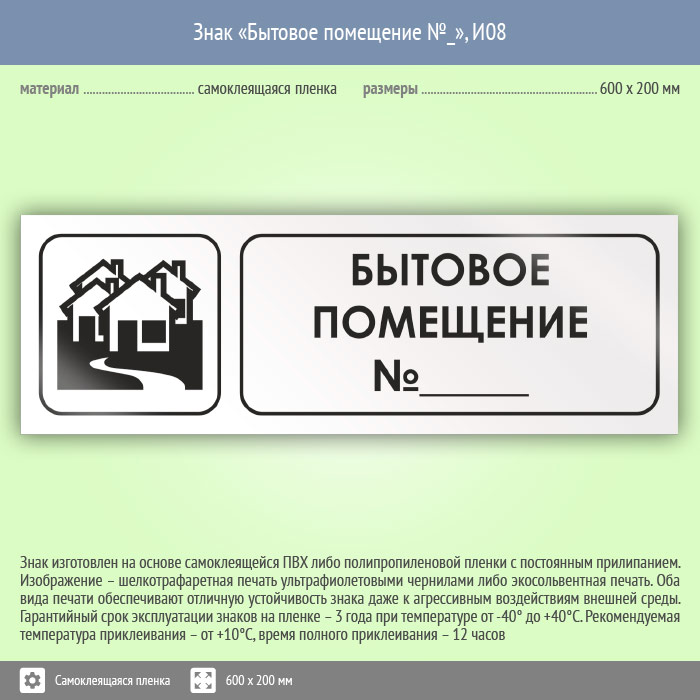 Знак «Бытовое помещение №_», И08 (пленка, 600х200 мм) в Кызыле купить