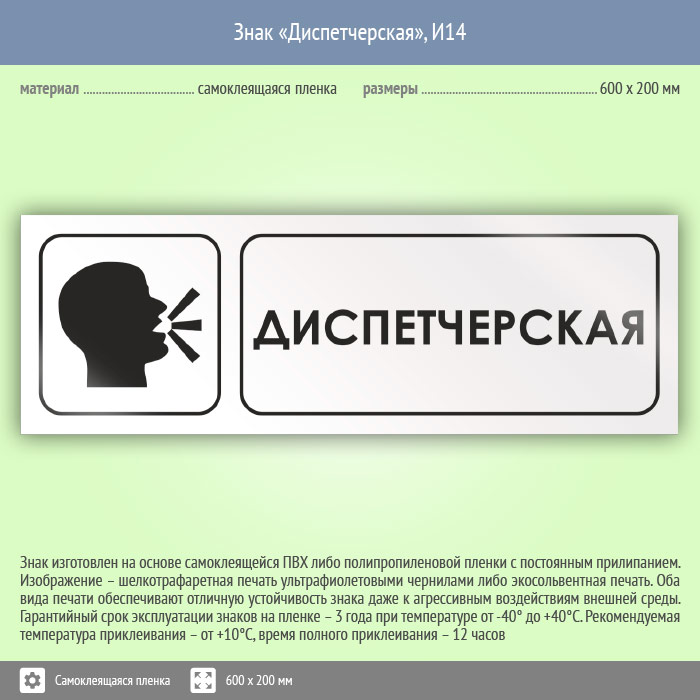 Знак «Диспетчерская», И14 (пленка, 600х200 мм) в Кызыле купить
