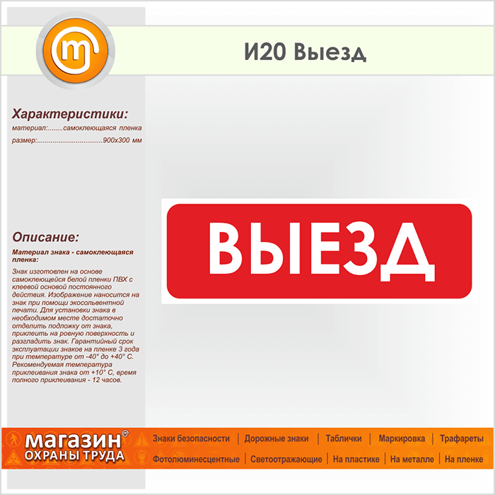 Знак «Выезд», И20 (пленка, 900х300 мм) в Кызыле купить