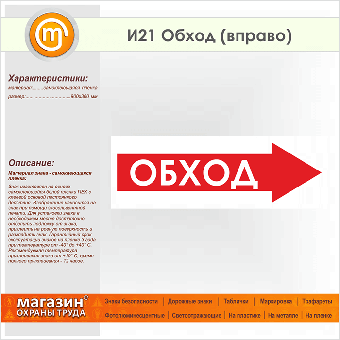 Знак «Обход (вправо)», И21 (пленка, 900х300 мм) в Кызыле купить