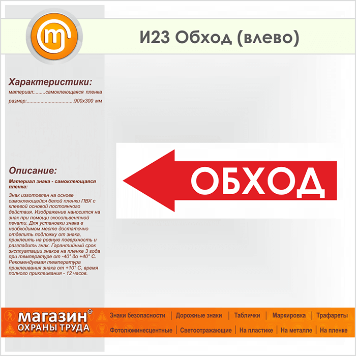 Знак «Обход (влево)», И23 (пленка, 900х300 мм) в Кызыле купить