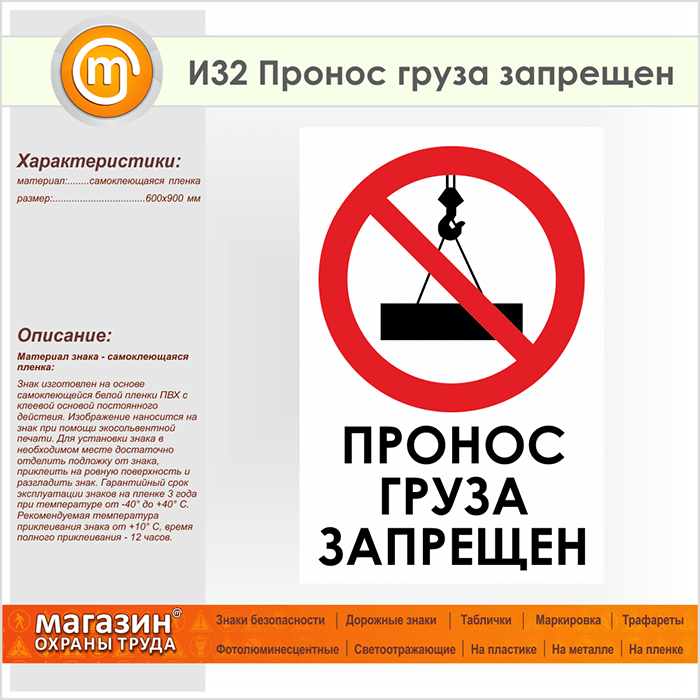 Знак «Пронос груза запрещен», И32 (пленка, 600х900 мм) в Кызыле купить