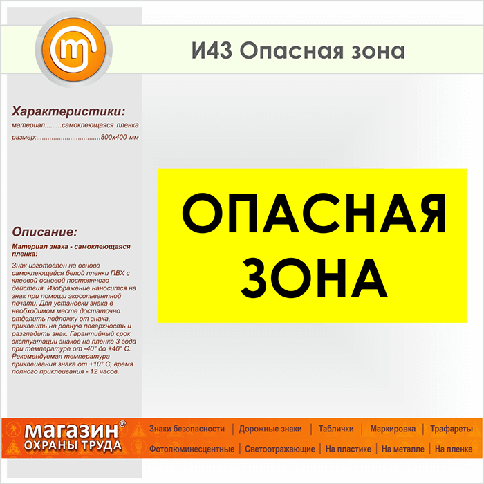 Знак «Опасная зона», И43 (пленка, 800х400 мм) в Кызыле купить