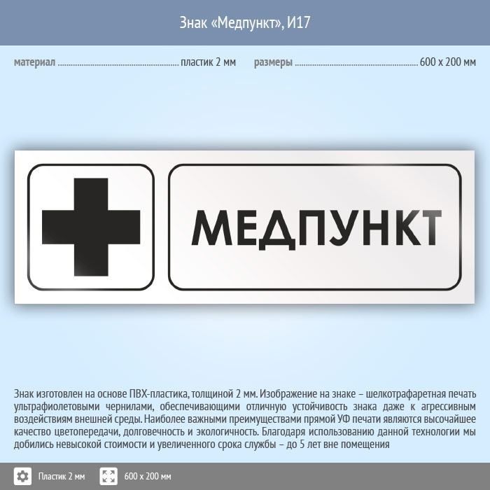 Знак «Медпункт», И17 (пластик, 600х200 мм) в Кызыле купить