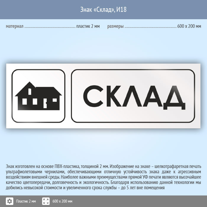 Знак «Склад», И18 (пластик, 600х200 мм) в Кызыле купить