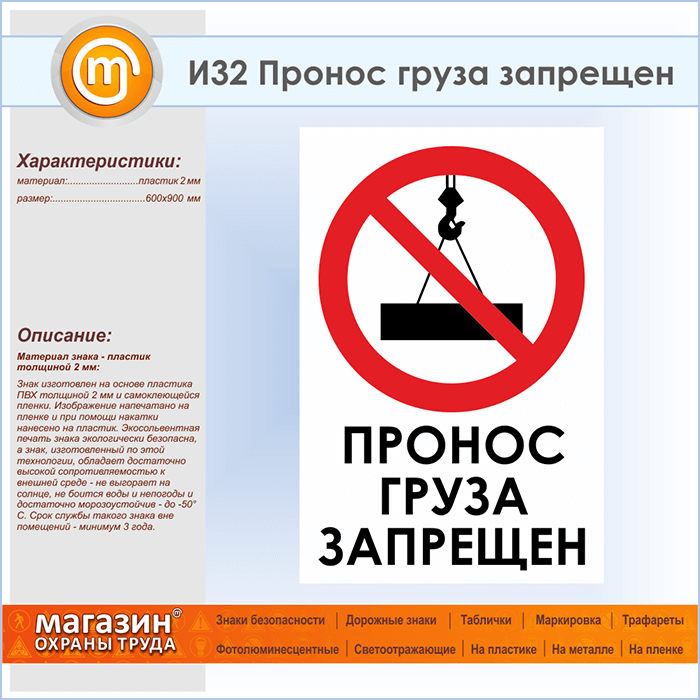 Знак «Пронос груза запрещен», И32 (пластик, 600х900 мм) в Кызыле купить