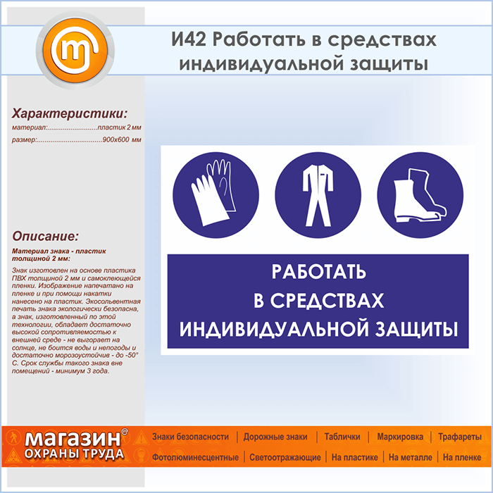 Знак «Работать в средствах индивидуальной защиты», И42 (пластик, 900х600 мм) в Кызыле купить