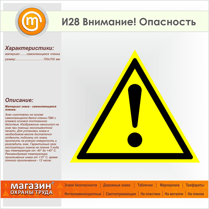 Знак «Внимание! Опасность», И28 (пленка, сторона 700 мм) в Кызыле купить