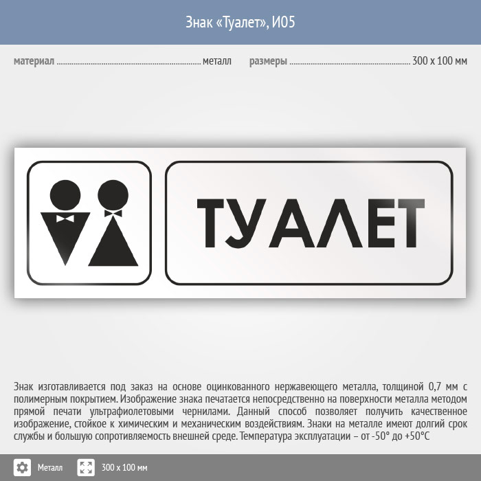 Знак «Туалет», И05 (металл, 300х100 мм) в Кызыле купить