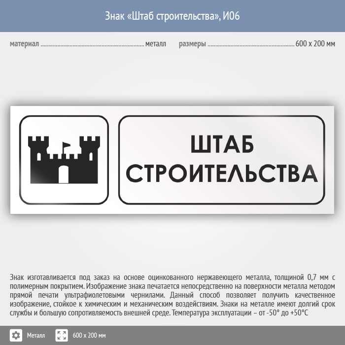 Знак «Штаб строительства», И06 (металл, 600х200 мм) в Кызыле купить
