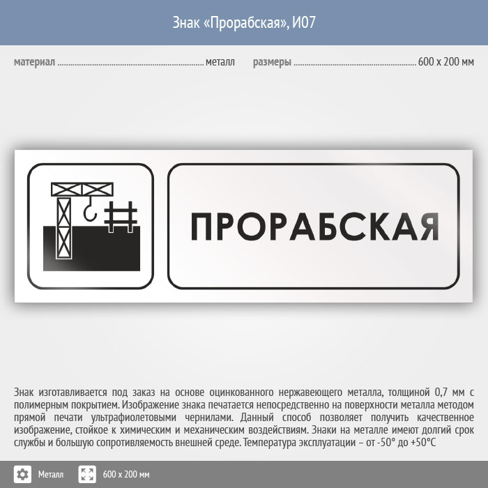 Знак «Прорабская», И07 (металл, 600х200 мм) в Кызыле купить