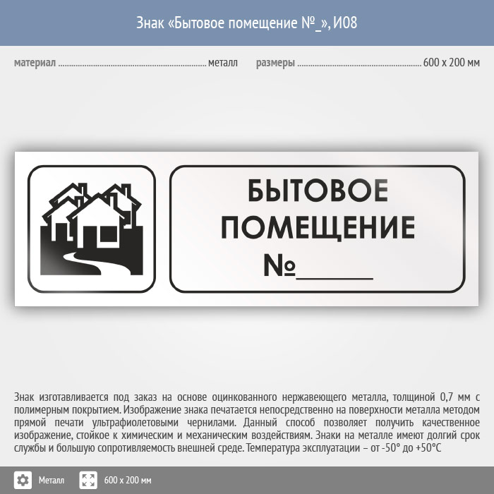 Знак «Бытовое помещение №_», И08 (металл, 600х200 мм) в Кызыле купить