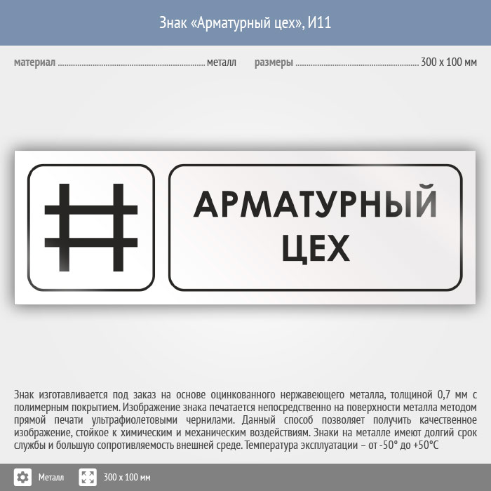 Знак «Арматурный цех», И11 (металл, 300х100 мм) в Кызыле купить