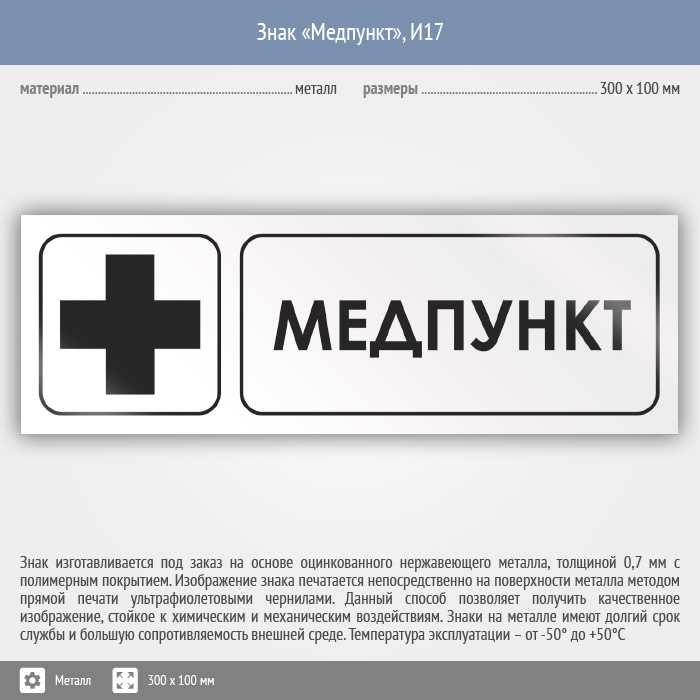 Знак «Медпункт», И17 (металл, 300х100 мм) в Кызыле купить
